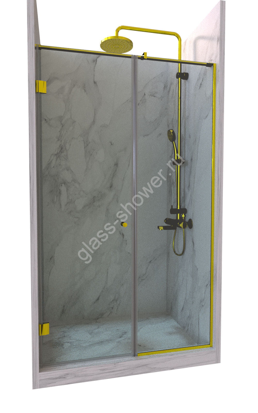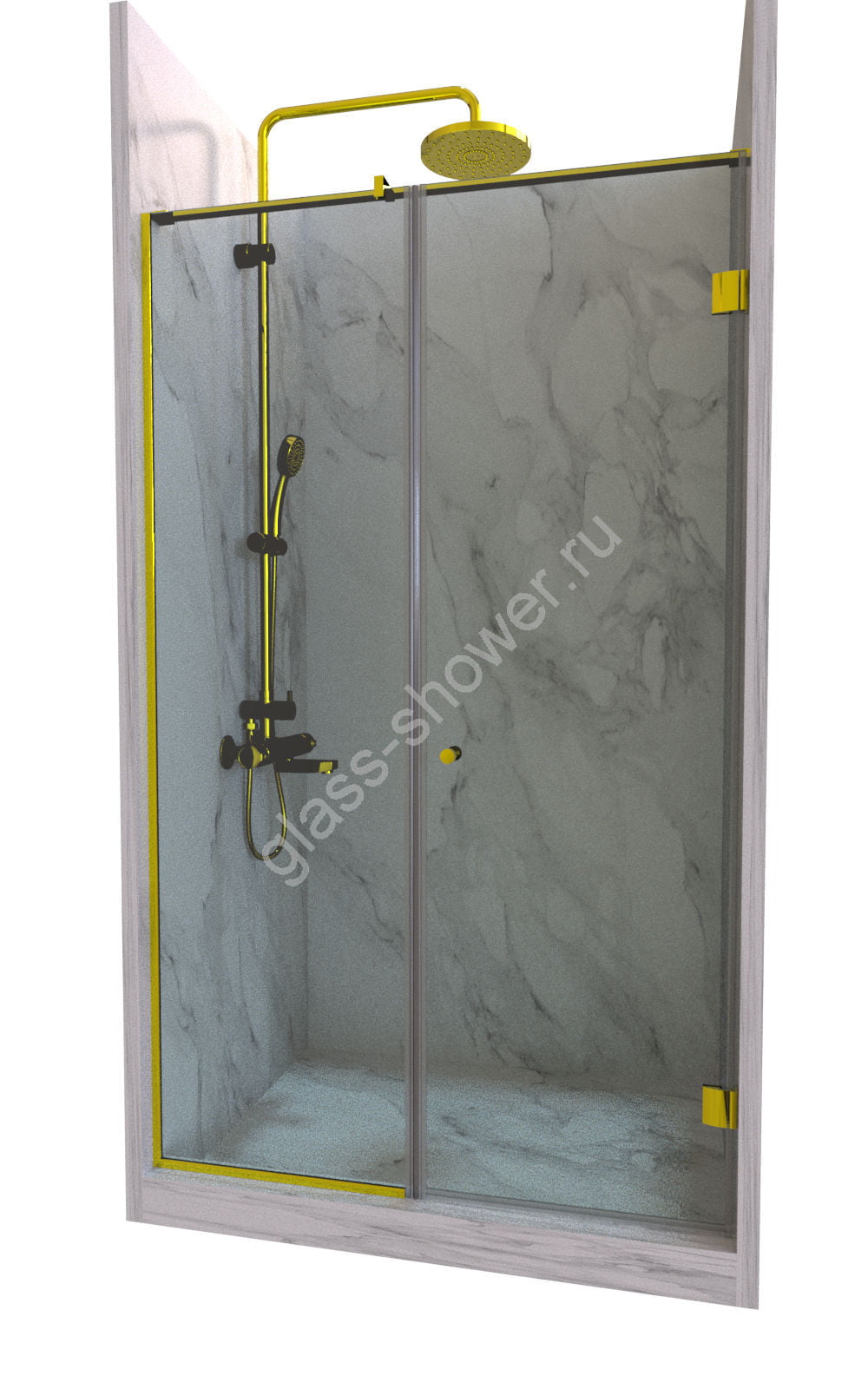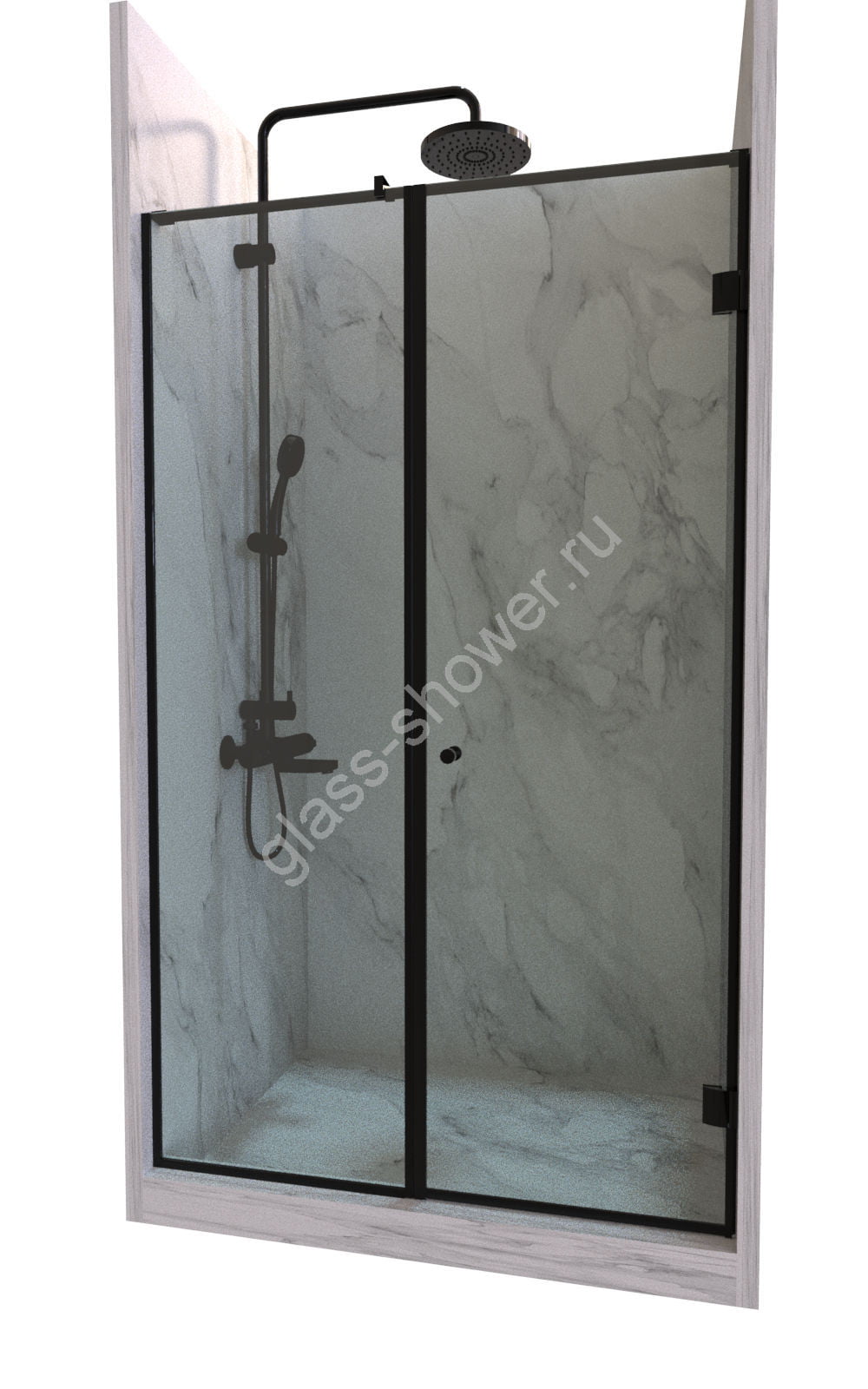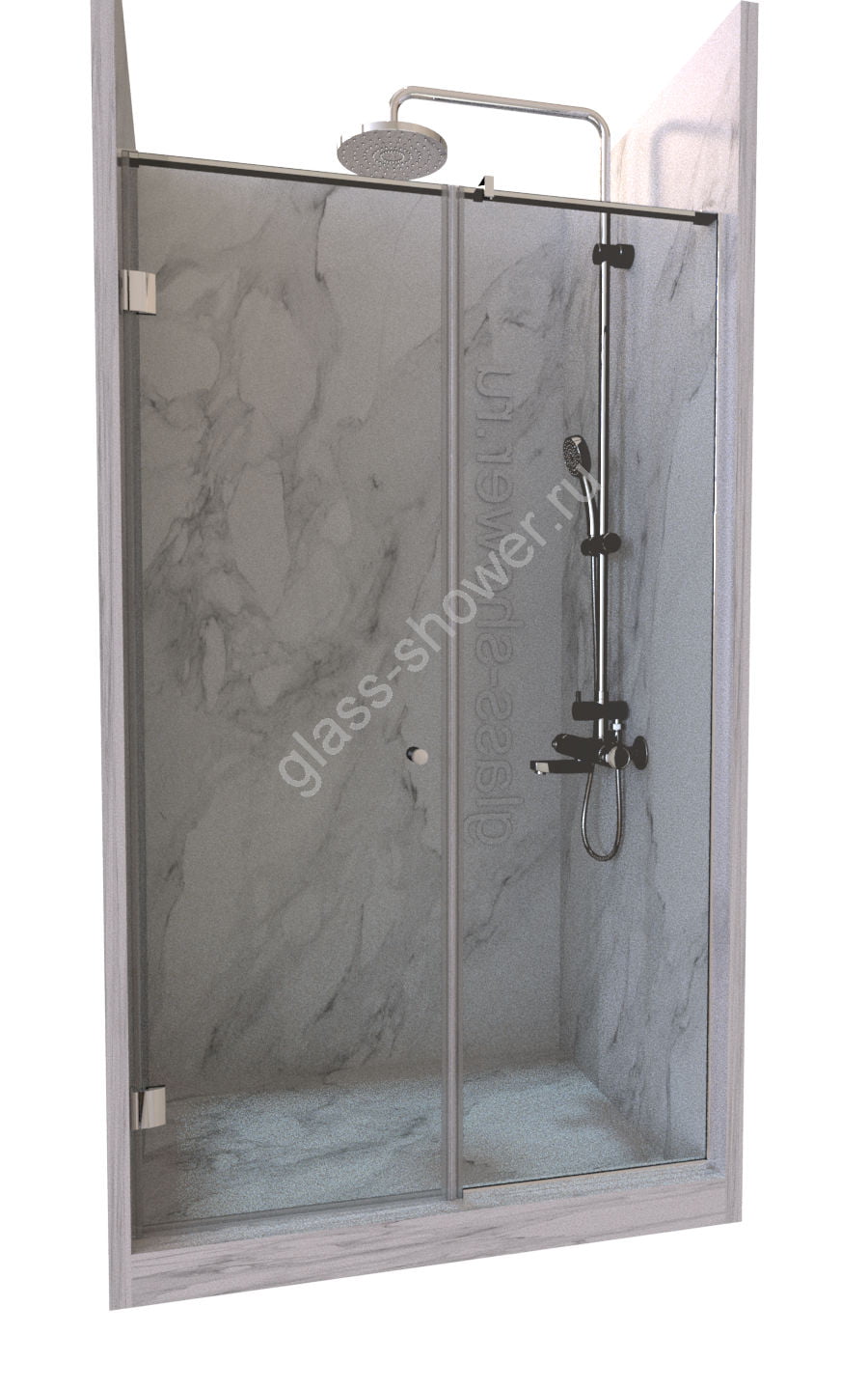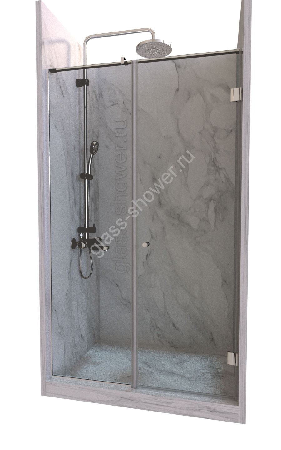 Ограждение в нишу, состоящее из одной стеклянной распашной двери с добором, — это элегантное и практичное решение для вашего интерьера. Если вам также нужно ограждение для душа на заказ, то мы готовы предложить вам индивидуальные варианты.